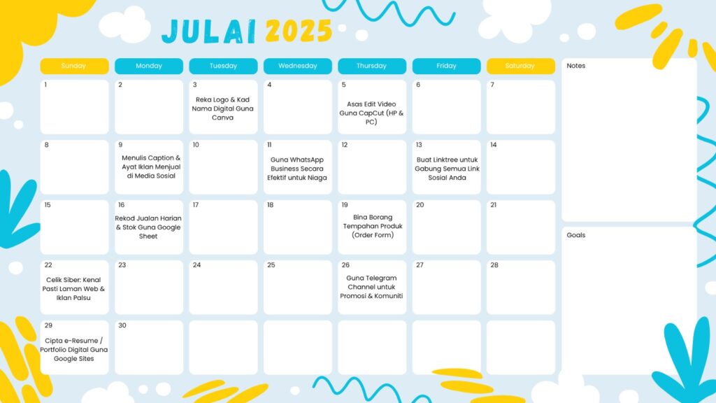 JADUAL LATIHAN DAN AKTIVITI BULAN JULAI 2025