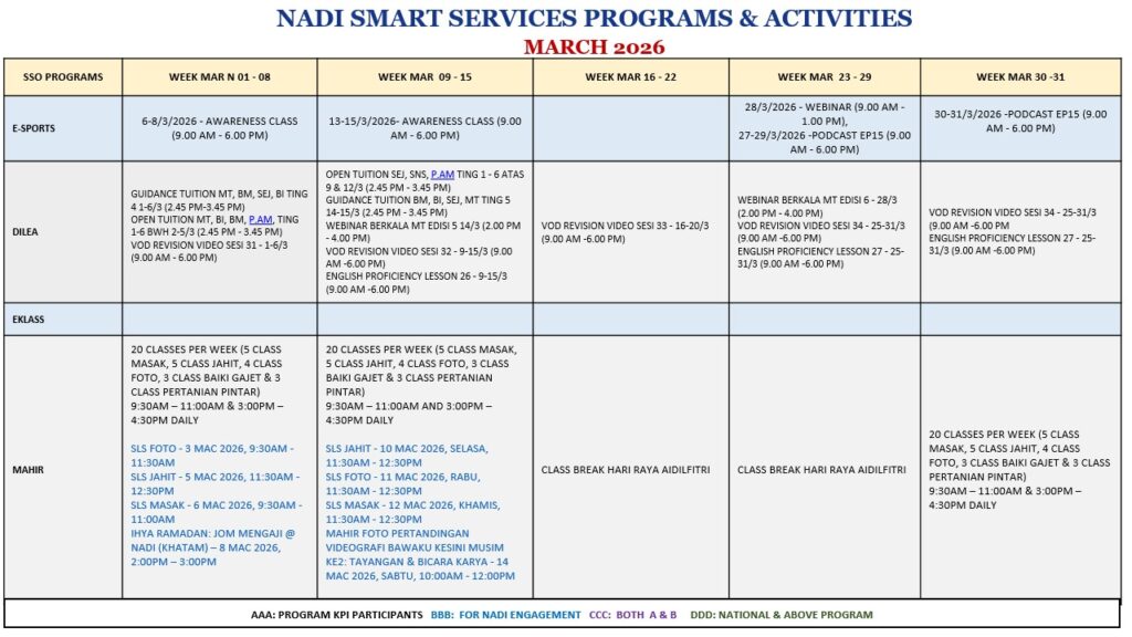 JADUAL LATIHAN DAN AKTIVITI BULAN MAC 2026