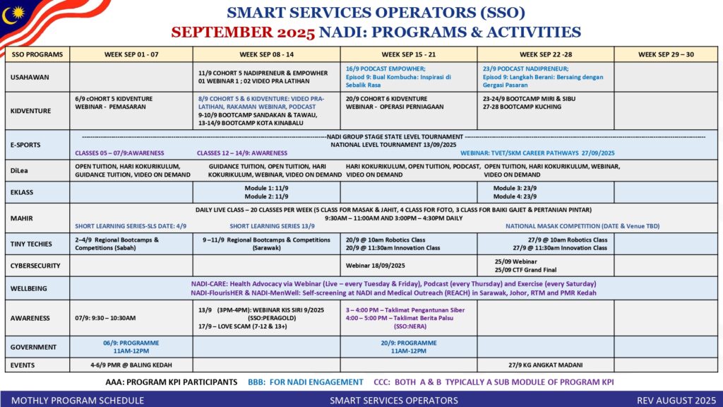 JADUAL LATIHAN DAN AKTIVITI BULAN SEPTEMBER 2025
